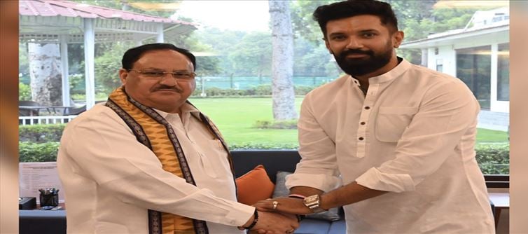 Reportedly chirag paswan has come to meet bjp National President JP Nadda. Along with him, former bihar bjp president Mangal Pandey has also reached Nadda's residence. This meeting is considered very important amid reports of Chirag Paswan's displeasure before seat sharing. Actually, both chirag paswan and Pashupati Kumar Paras are adamant regarding hajipur seat. Pashupati Kumar Paras is a minister at the Centre. Both the leaders are part of nda in Bihar. bjp is trying to end the tension between the two regarding seats. Pashupati has already made it clear that whatever decision the bjp high command takes will be universally acceptable to him.