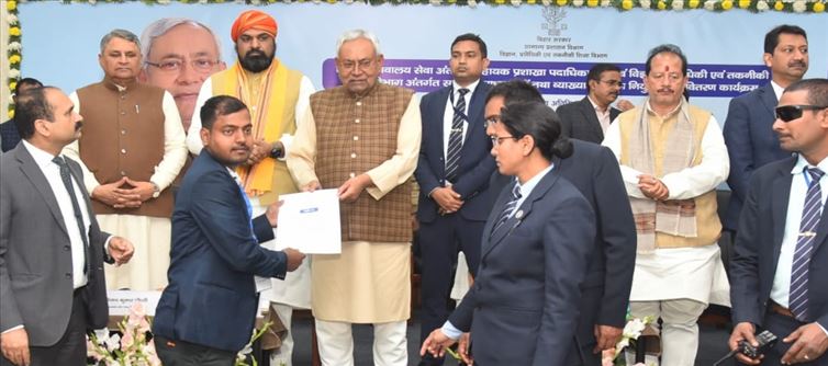 cm nitish kumar has included Anita Kumari, Afsana Begum, Yashwant Kumar, Shweta Ranjan, Harishankar Choubey, Dr. Bharti Kumari, uday Kumar Mishra, Babita Kumari, Sangeeta Kumari, praveen Kumar, Smrita Shri, Abdul Kalam among the newly appointed AYUSH doctors under the health Department. , Bushra Hayat, Rahat Jahan were given appointment letters symbolically. The chief minister also gave appointment letters symbolically to Assistant Engineers Neeraj Kumar, amit Kumar, Nivedita Bharti, Sangeeta rani Sinha and Vikas Kumar Gupta under the Urban Development and Housing Department.
