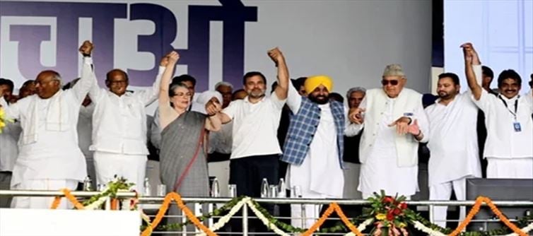 विपक्ष इंडिया ब्लॉक नेताओं ने रविवार (31 मार्च) को लोकतंत्र बचाओ रैली आयोजित की जिसमें भारी संख्या में लोग शामिल हुए। दिल्ली के रामलीला मैदान में यह रैली दिल्ली के मुख्यमंत्री अरविंद केजरीवाल की गिरफ्तारी के विरोध में आयोजित की गई थी। इस कार्यक्रम में कांग्रेस के राहुल और प्रियंका गांधी, राजद के तेजस्वी यादव, राकांपा (शरदचंद्र पवार) नेता शरद पवार, शिवसेना (यूबीटी) प्रमुख उद्धव ठाकरे, समाजवादी पार्टी के अध्यक्ष अखिलेश यादव, सीपीआई (एम) के महासचिव सीताराम येचुरी जैसे विपक्षी नेता शामिल हुए। सीपीआई महासचिव डी राजा, पीडीपी प्रमुख महबूबा मुफ्ती, एनसी के फारूक अब्दुल्ला और झारखंड के मुख्यमंत्री चंपई सोरेन सहित अन्य उपस्थित भी थे। सुनीता केजरीवाल ने अपने पति का प्रतिनिधित्व किया जो वर्तमान में प्रवर्तन निदेशालय की हिरासत में हैं। उन्होंने जेल में बंद दिल्ली के सीएम द्वारा लिखा गया एक पत्र भी पढ़ा।