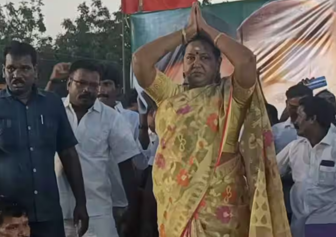 A video of DMDK general secretary Premalatha Vijayakanth collecting tearful votes in support of AIADMK candidate Kumaraguru in Vanapuram is going viral. Parliamentary elections will be held across tamil Nadu on april 19 in a single phase. Along with this, political parties across tamil Nadu are actively engaged in vote collection. In this situation, DMDK general secretary Premalatha Vijayakanth participated in the election campaign meeting held in the Vanapuram area of the Rishivanthiyam assembly constituency of Kallakurichi parliamentary constituency to gather votes for AIADMK candidate Kumaraguru. On the stage, AIADMK candidate Kumaraguru, while talking about DMDK and Vijayakanth, was speechless. Likewise, DMDK General Secretary Premalatha Vijayakanth, who was sitting on the stage and listening to what he said, burst into tears when AIADMK candidate Kumaraguru spoke.