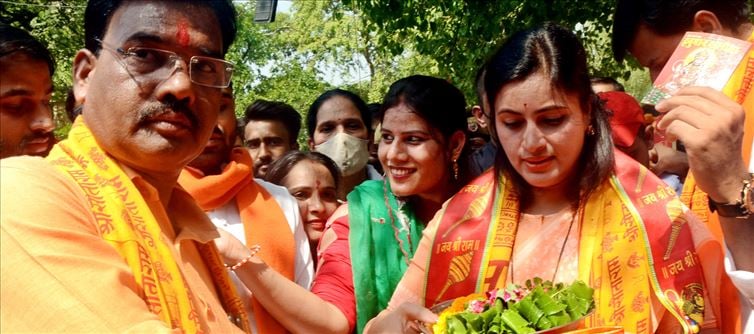 Before filing their nomination, Navneet Rana along with her husband Ravi Rana went to Hanumangarhi temple and offered prayers. During this, he placed his nomination papers at the feet of Lord Hanuman and after this, he folded his hands and bowed his head and took blessings.