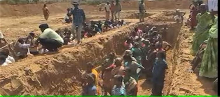 Meanwhile, the ditch was dug today for the construction of the building. Knowing this, the people of the area gathered there. And the villagers of Parvathipuram have gone down in that ditch and are engaged in protest. There is a protest going on demanding that this center should not be set up in the Sathya Gnana Sabha Peruveli and that the government should set it up at a place.