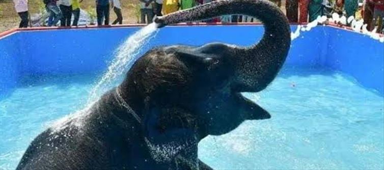 For this, a swimming pool has been constructed last year at a cost of Rs.30 lakh. In it, the elephant goddess was bathed in blissful bathing, swimming and splashing. It is noteworthy that the 'shower bath' has been set up.
