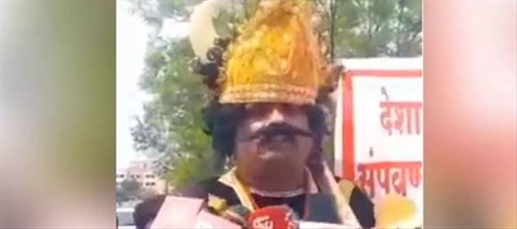 Dressed in gold and black attire and dhoti, a gleaming golden cap with two protruding curved white horns, and a glittering mace in his hand, ram Gaikwad announced that he would go to parliament to rid the country of corruption, poverty, unemployment, and other evils. Will contest lok sabha elections from Madha.