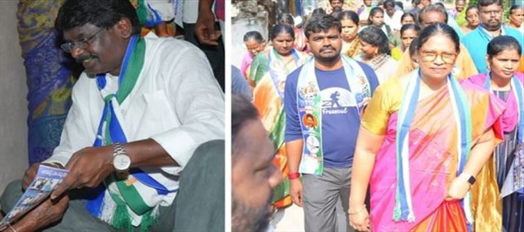 -Stella sathish is going from house to house promoting ycp schemes.