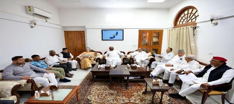 बैठक में खड़गे के अलावा कांग्रेस नेता सोनिया गांधी, राहुल गांधी, प्रियंका गांधी और केसी वेणुगोपाल मौजूद हैं।
