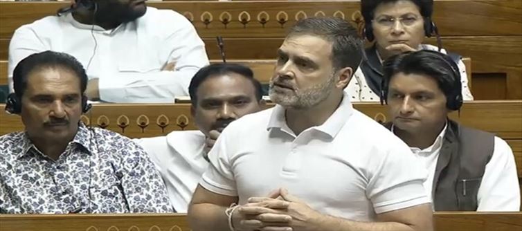 सोमवार को लोकसभा में बोलते हुए, विपक्ष के नेता, राहुल गांधी ने कहा कि देश आज एक 'चक्रव्यूह' में फंस गया है, जिसका प्रतिनिधित्व कमल का निशान (भाजपा का) करता है।