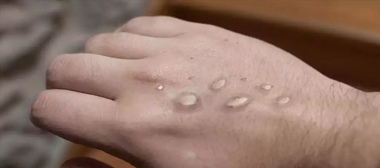 പനി, തീവ്രമായ തലവേദന, കഴലവീക്കം, നടുവേദന, പേശി വേദന, ഊർജക്കുറവ് എന്നിവയാണ് പ്രാരംഭ ലക്ഷണങ്ങൾ. പനി തുടങ്ങി ഒരാഴ്ചയ്ക്കുള്ളിൽ ദേഹത്ത് കുമിളകളും ചുവന്ന പാടുകളും പ്രത്യക്ഷപ്പെടാൻ തുടങ്ങുന്നു. മുഖത്തും കൈകാലുകളിലുമാണ് കൂടുതൽ കുമിളകൾ കാണപ്പെടുന്നത്. ഇതിനുപുറമെ കൈപ്പത്തി, ജനനേന്ദ്രിയം, കണ്ണുകൾ എന്നീ ശരീരഭാഗങ്ങളിലും ഇവ കാണപ്പെടുന്നു.