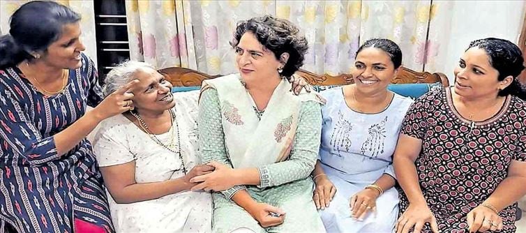 ത്രേസ്യാമ്മയുടെ ആ ആഗ്രഹം സഫലം; പ്രിയങ്കയെ സ്വീകരിച്ചത് കൊന്തയും മധുരവും നൽകി! പ്രിയങ്ക താമസിക്കുന്ന പഞ്ചനക്ഷത്ര ഹോട്ടലിന് സമീപത്ത് കരുമാങ്കുളത്ത് ത്രേസ്യാമ്മയുടെ വീട്ടിലാണ് പ്രിയങ്ക ഗാന്ധി അപ്രതീക്ഷിത അതിഥിയായത്. ഇതോടെ പ്രിയങ്കയെ കാണുകയെന്ന വർഷങ്ങളായുള്ള ഈ 73കാരിയുടെ ആഗ്രഹം പൂവണിഞ്ഞു. നാമനിർദേശ പത്രികാ സമർപ്പണത്തിനായി വയനാട്ടിൽ എത്തിയ പ്രിയങ്ക ഗാന്ധി സുൽത്താൻ ബത്തേരിയിലെ വീട്ടിൽ സർപ്രൈസ് വിസിറ്റ് നടത്തി വീട്ടുകാരെ ഞെട്ടിച്ചു. വീട്ടിലേക്കെത്തിയ പ്രിയങ്ക ത്രേസ്യാമ്മയെ ആലിംഗനം ചെയ്തും ഉമ്മ വെച്ചും സ്നേഹം പങ്കുവെച്ചു. കുടുംബാംഗങ്ങളോട് വിശേഷങ്ങൾ ചോദിച്ചറിഞ്ഞ പ്രിയങ്ക ഗാന്ധിയെ അവർ അകത്തേക്ക് ക്ഷണിച്ചു. പിന്നെ കൊന്തയും മധുരവും നൽകി.