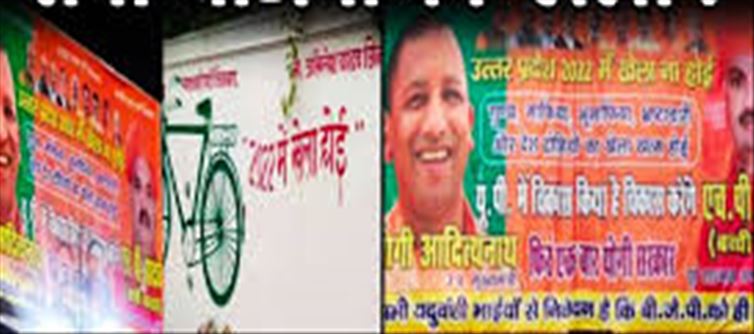 After the state capital Lucknow, now the poster war has intensified in varanasi as well. Just a few days ago, a poster based on 'Batoge to Katoge' was put up by bjp supporters in Lanka area of varanasi, now in response to that, a poster has been put up by Samajwadi party supporters. In which akhilesh yadav is shown in the role of Lord Shri krishna and rahul gandhi in the role of arjun while writing Sankalp 2024 Lakshya 2027. It has been put up on a very popular route of varanasi from where one goes towards the main city.