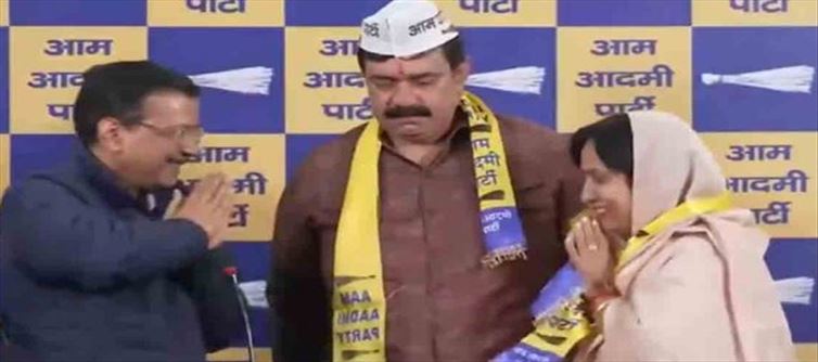 Just before the delhi Assembly elections, bjp has once again suffered a setback. bjp councilor Kusum Lata joined the aam aadmi party on sunday along with her husband Ramesh Pehlwan. AAP national convenor arvind kejriwal gave membership to the couple by making them wear a turban and cap. On taking membership, Kusum Lata said, "I am a corporation councilor for the second time. My tenure was from 2012-17. After that I contested the 2022 elections from BJP. I have joined AAP after being influenced by Arvind Kejriwal's ideology. It is my good fortune to join AAP." He said that aam aadmi party thinks about everyone's interests. Ramesh Pehlwan also praised former chief minister Arvind Kejriwal. He said that arvind kejriwal has fulfilled the dreams of all Delhiites by providing free education, health, electricity, water.