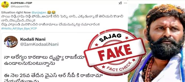 ఈనెల 25న కొడాలి నాని వైసీపీకి రిజైన్ చేస్తున్నారని ఆరోగ్య కారణాల దృష్ట రాజకీయాలకు దూరంగా ఉండబోతున్నారు అంటూ సోషల్ మీడియాలో కూడా ఒక పోస్ట్ వైరల్ గా మారింది. ఈ విషయం ఒక్కసారిగా వైసిపి నేతలను ఆందోళనకు గురి చేసింది. దీనిపైన స్వయంగా కొడాలి నాని స్పందిస్తూ అది ఫేక్ విషయమని క్లారిటీ ఇచ్చారు.. తనమీద జరుగుతున్న వాటిలో ఎలాంటి నిజం లేదని తాను వైసీపీకి రాజీనామా చేస్తున్నట్లు ఎక్కడ తను ప్రకటించలేదని తెలిపారు.