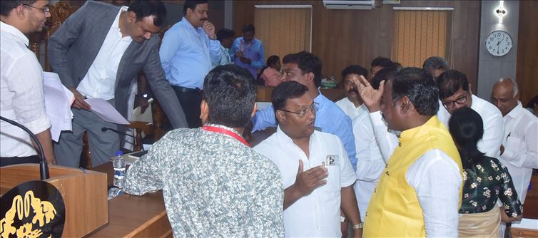 After the lunch hours, HDMC Commissioner Rudresh Ghali left the meeting hall to take part in a meeting with district In-rate minister Santosh Lad. multiple officers also left the assembly hall with the commissioner. subsequently the corporators questioned the commissioner's absence and demanded to adjourn the assembly.