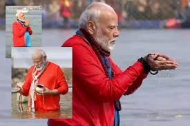 Prime minister narendra modi took a dip of faith in Triveni Sangam in Prayagraj Mahakumbh on Wednesday. He duly worshiped Maa ganga, Maa yamuna and invisible Saraswati and gave the message of unity and 'Ek Bharat Shreshtha Bharat' to the whole world. Amidst Vedic chanting, the PM took a bath with full devotion and offered arghya to Lord Surya. After this, he performed the aarti of Maa ganga and offered Akshat, flowers and fruits at Sangam.