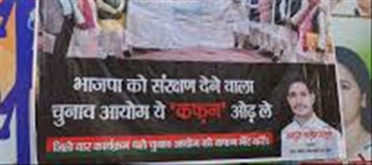 This controversial poster against the election commission has been put up by the state secretary of Samajwadi Chhatra Sabha, Abdul Azim Mansuri. Earlier, SP President akhilesh yadav had also attacked the election commission, accusing it of irregularities in the Milkipur by-election. The SP President said that this is the BJP's way of contesting elections. The election commission is dead. We will have to present a white cloth.