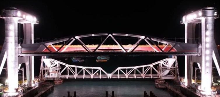 The 2.1-km bridge is India's first vertical carry railway sea bridge, with a vertical raise span cutting-edge seventy-two m. It is an enormous improvement over the cantilever gadget, the latest being the 104-year-old Pamban Bridge.