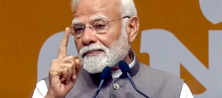 प्रधानमंत्री नरेंद्र मोदी ने मंगलवार को गुजरात के गांधीनगर में पाकिस्तान पर फिर से हमला करते हुए कहा कि उनकी सरकार ने भारत से आतंकवाद की कली को उखाड़ फेंकने का फैसला किया है। उन्होंने यह बयान महात्मा मंदिर में 5,536 करोड़ रुपये की विकास परियोजनाओं का उद्घाटन करते हुए दिया।