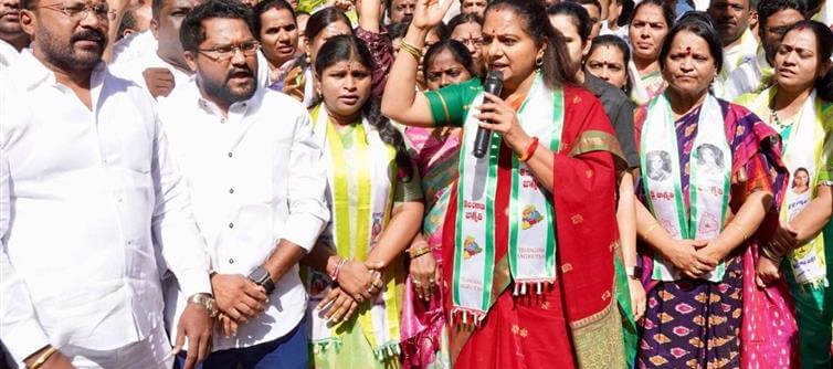 ఇక ఈ మధ్యకాలంలో కవిత కూడా బీఆర్ఎస్ పార్టీకి వ్యతిరేకంగా కొత్త పార్టీ పెట్టే దిశలో కనిపిస్తోంది.అయితే తాజాగా రాష్ట్ర అవతరణ దినోత్సవం రోజు కవిత చేసిన పనికి చాలామంది షాక్ అయిపోతున్నారు. రాష్ట్ర అవతరణ దినోత్సవం ముందే జాగృతి పార్టీ ఆఫీస్ ని కొత్తగా ఓపెన్ చేసిన కవిత తాజాగా రాష్ట్ర అవతరణ వేడుకలలో పాల్గొంది. ఇందులో కవిత వేసుకున్న కండువా కూడా మార్చుకుంది. అంతకుముందు గులాబీ రంగు కండువా ధరించిన కవిత తాజాగా గులాబీ రంగు కండువాను ధరించకుండా జాగృతి అని ఉన్న కండువాని మెడలో వేసుకుంది.అలాగే ఆ కండువా పై కేసీఆర్ ఫోటో కూడా లేదు. దీంతో కవిత కొత్త పార్టీ పెట్టే దిశగా అడుగులు వేస్తున్నట్టు కనిపిస్తోంది