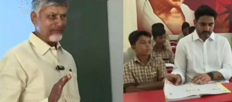 అంతేకాదు మెరుగ్గా ఫలితాలు సాధించాలి అని సీఎం విద్యార్థులకు శుభాకాంక్షలు కూడా తెలియజేశారు. అనంతరం కాసేపు ఉపాధ్యాయుడిగా మారి సీఎం చంద్రబాబు సోషల్ సైన్స్ పాఠాలను విద్యార్థులకు బోధించారు. ఎనిమిదవ తరగతి విద్యార్థులకు ఆయన సోషల్ సైన్స్ పాఠాలను బోధించారు . ఈ క్రమంలోనే సీఎం చంద్రబాబు చెప్పిన పాఠాన్ని ఒక విద్యార్ధిలా శ్రద్ధగా మంత్రి నారా లోకేష్ విన్నారు . దీనికి సంబంధించిన పిక్చర్స్ సోషల్ మీడియాలో బాగా ట్రెండ్ అవుతున్నాయి. ఆ పాఠశాలలోని విద్యార్థుల సైతం ఆసక్తిగా శ్రద్ధగా ఎంతో వినయంగా సీఎం చంద్రబాబు నాయుడు చెప్పిన సోషల్ సైన్స్ పాఠాన్ని బాగా చక్కగా విన్నారు..!!