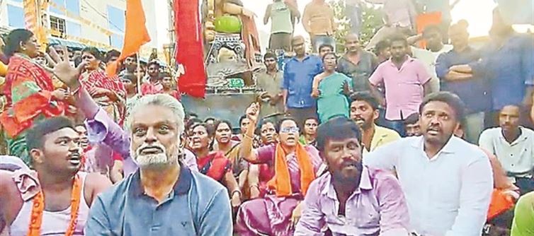 దీంతో ఇరువురి వర్గాల మధ్య తీవ్రమైన వాగ్వాదం చోటుచేసుకుంది. అంతేకాకుండా తోపులాట మధ్యలో కూడా రాళ్ల దాడి జరగడంతో ఈ రాళ్లదాడిలో ఉత్సవ కమిటీ వర్గానికి చెందిన రాహుల్, గొల్లపల్లి కిషోర్ కి తీవ్రమైన గాయాలయ్యాయి. వీరిని చికిత్స నిమిత్తం నందిగామ ప్రభుత్వాసుపత్రికి తీసుకువెళ్లారు. ఈ విషయం తెలిసిన భాజపా శ్రేణులు కూడా ఆ సంఘటన స్థలానికి చేరుకొని మరి రహదారి పైన గ్రామ ప్రజలతో ఆందోళన చేపట్టారు. 24 గంటలలో న్యాయం చేయాలని గతంలో కూడా వారు ఎన్నోసార్లు దాడులు చేశారంటూ రహదారి పైన బైఠాయించారు.