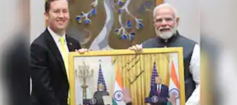 Gor carried a framed set of photographs featuring PM narendra modi and former US President Donald Trump.