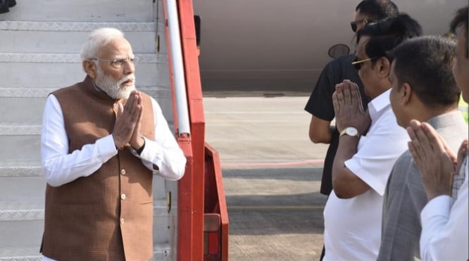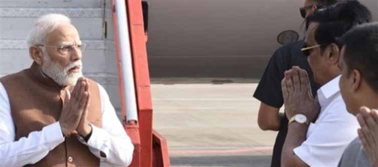 Prime minister Narendra Modi arrived in gujarat as part of his scheduled state visit.
