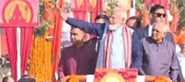 Ahead of the yatra, thousands gathered along the route to welcome the prime minister, with saints, seers and children participating in the celebrations.