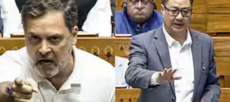 A heated exchange took place in the lok sabha between rahul gandhi and Union minister Kiren Rijiju.