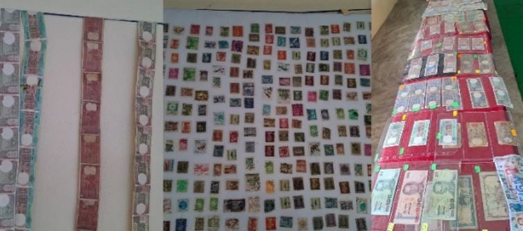 మొత్తం 204 దేశాలకు చెందిన కరెన్సీ నోట్లు, నాణేలు 100 కోట్ల డాలర్ల విలువైనవి ప్రదర్శనకు ఉంచారు. సీతారామ పట్టాభిషేకం కాలంలో తానీషా కాలంలో వాడిన 450 ఏళ్ల నాటి పంచలోహ నాణేలు, గుప్తులు, చోళులు, కాకతీయుల కాలంలో వాడిన కరెన్సీ నాణేలు, రాచముద్రలు, రిజర్వ్ బ్యాంక్ స్థాపించినప్పటి నుంచి ప్రతి యేడాది విడుదలయ్యే రూపాయి, రు. 2 నాణేలతో పాటు అణ, కాడె, బేడా లాంటి పూర్వాకాల కరెన్సీ నాణేలు, వివిధ దేశాలకు చెందిన స్టాంపులు కూడా ప్రదర్శించారు. ఇవన్నీవిద్యార్థులో ఆసక్తిని పెంచేలా ఉన్నాయి. గత 30 ఏళ్లుగా వీటిని ఎన్నో కష్టాలకోర్చి సేకరించిన ప్రిన్సిపాల్ సత్యనారాయణ మూర్తిని పలువురు అభినందించారు. ఈ కార్యక్రమాన్ని మండలంలో ప్రభుత్వ, ప్రైవేటు పాఠశాలల విద్యార్థులు, తల్లిదండ్రులు, గ్రామ ప్రజలు ఎంతో ఆసక్తిగా తిలకించారు.