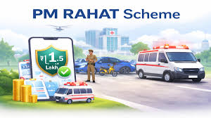 The PM RAHAT (Road accident Victim Hospitalisation and Assured Treatment) Scheme is a new government programme designed to ensure timely and cashless medical care for victims of road accidents across India. Under this initiative, every eligible road accident victim will receive free emergency treatment of up to ₹1.5 lakh to help save lives without financial burden.