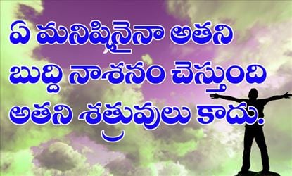 నేటి మంచిమాట.. ఏ మనిషినైనా అతని బుద్ధినే నాశనం చేస్తుంది. అతని శత్రువులు కాదు! అవును.. ఎవరినైనా బుద్ధి ఏ నాశనం చేస్తుంది... బుద్ధి బాగుంటే జీవితం బాగుంటుంది.. బుద్ధి ఛండాలంగా ఉంటే జీవితం ఘోరంగా ఉంటుంది. మన జీవీతాన్ని ఏ శత్రువు వచ్చి నాశనం చెయ్యాల్సిన పని లేదు.. మన అహంకారమే మన జీవితాన్ని నాశనం చేస్తుంది.