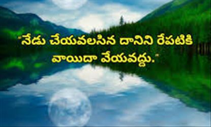 నేటి మంచిమాట.. ఏం చేయలన్నా ఇప్పుడే ప్రయత్నించండి.. వాయిదా వేయొద్దు! అవును చాలామంది అంతే.. ఈరోజు పనిని ఈరోజు పూర్తి చెయ్యరు.. ఎవరైనా పని పూర్తి చెయ్యి అని చెప్పారు అంటే? చేస్తాలే రేపు అంటూ వాయిదా వేస్తారు.. రేపు ఎం అవుతుంది.. రేపటి పని చెయ్యలేరు.. ఈరోజు పని రేపు పూర్తి చేసిన ఉపయోగం ఉండదు.