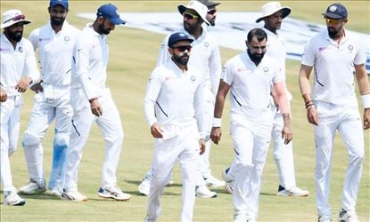 రాంచీ వేదికగా దక్షిణాఫ్రికాతో జరుగుతున్న మూడో టెస్టు మ్యాచ్లో రెండో రోజైన ఆదివారం ఓవర్నైట్ స్కోరు 224/3 తో మొదటి ఇన్నింగ్స్ని కొనసాగించిన టీమిండియా.. రోహిత్ శర్మ (212: 255 బంతుల్లో 28x4, 6x6) డబుల్ సెంచరీ, అజింక్య రహానె (115 బంతుల్లో 192 బంతుల్లో 17x4, 1x6) శతకం బాదడంతో మెరుగైన స్కోరు చేయగిలింది. రెండో సెషన్ ముగుస్తుందన్న దశలో భారత్ ఇన్నింగ్స్ని విరాట్ కోహ్లీ 497/9 వద్ద డిక్లేర్ చేయగా, అప్పుడు క్రీజులో నదీమ్ (1 నాటౌట్), మహ్మద్ షమీ (10 నాటౌట్: 11 బంతుల్లో 1x6) ఉన్నారు. దక్షిణాఫ్రికా బౌలర్లలో జార్జ్ లిండే నాలుగు వికెట్లు పడగొట్టగా.. కగిసో రబాడ మూడు వికెట్లు, ఆన్రిచ్ నోర్తేజ్, డాన్ పైట్ తలా ఒక వికెట్ తీశారు.