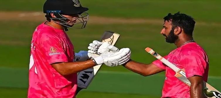 టీమిండియాలో పేలవమైన ఫామ్ కారణంగా చోటు దక్కించుకోలేకపోయాడు చటేశ్వర్ పూజారా. ప్రస్తుతం ఇంగ్లాండ్ కౌంటి ల్లో ఆడుతున్నాడు. ఇక ఈ క్రమంలోనే ప్రస్తుతం ఇంగ్లండ్ వేదికగా జరుగుతున్న రాయల్ లండన్ వన్డే టోర్నమెంట్ లో భాగంగా బౌలర్ల పై వీరవిహారం చేస్తూ ఉన్నాడు అని చెప్పాలి. సెంచరీలతో చెలరేగిన పోతూ ఉన్నాడు. సిక్సర్లు ఫోర్ లతో విజృంభిస్తున్నాడు. ప్రస్తుతం ఈ టోర్నమెంట్లో భాగంగా ససెక్స్ జట్టు తరపున ప్రాతినిధ్యం వహిస్తున్నాడు. ఇటీవలే మరోసారి సెంచరీ చేసి అదరగొట్టాడు అని చెప్పాలి. 90 బంతులను ఎదుర్కొన్న చటేశ్వర్ పుజారా 24 ఫోర్లు రెండు సిక్సర్లతో 132 పరుగులు చేశాడు.