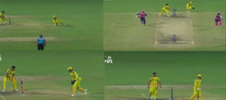 ఇలా వికెట్ల వెనకాల మహేంద్ర సింగ్ ధోనీ చేసే ఫీల్డింగ్ విన్యాసాలు ప్రేక్షకులు అందరిని కూడా అబ్బురపరుస్తూ ఉంటాయి అని చెప్పడంలోనూ అతిశయోక్తి లేదు. అలాంటి మహేంద్ర సింగ్ ధోని ఇక అటు ఐపీఎల్ లో కూడా తన కీపింగ్ నైపుణ్యాలతో మెరుస్తూ ఉంటాడు అని చెప్పాలి. ఇక రాజస్థాన్ రాయల్స్ తో జరిగిన మ్యాచ్ లో కూడా మెరుపు వేగంతో స్టంప్ అవుట్ చేసి మరోసారి అభిమానులను ఆశ్చర్యపరిచాడు మహేంద్రసింగ్ ధోని. రాజస్థాన్ ఇన్నింగ్స్ సమయంలో ఆఖరి ఓవర్ ను తుషార్ దేశ్ పాండే వేశాడు.
