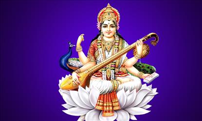 In the East Indian states of Bihar, West Bengal, Orissa: Saraswati is considered to be a daughter of Durga along with her sister Lakshmi and her brothers Ganesha and Karthikeya. The goddess Saraswati is often depicted as a beautiful woman dressed in pure white often seated on a white lotus, which symbolizes that she is founded in the experience of the Absolute Truth.