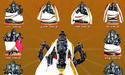 1. బాల గణపతి 2.తరుణ గణపతి 3.భక్త గణపతి 4.వీర గణపతి 5. శక్తి గణపతి 6.ద్విజ గణపతి 7.సిద్ధ గణపతి 8.ఉచ్చిష్ట గణపతి