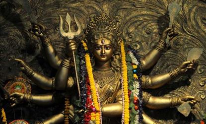 Meanwhile the word "Durga" in Sanskrit means a fort, or a place which is difficult to overrun. Another meaning of "Durga" is "Durgatinashini," which literally translates into "the one who eliminates sufferings." Thus, Hindus believe that goddess Durga protects her devotees from the evils of the world and at the same time removes their miseries.