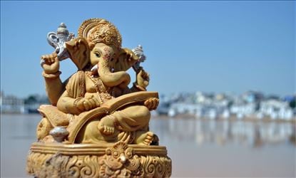 Ganesha pulled the snake with one hand and tied it as a belt around his stomach to prevent any further damage. However Ganesha’s misadventure was something which was not completely unobserved. The moon God Chandra Deva saw this and unable to stop him, laughed. Angrily, Ganesha pulled his tusk and threw it at the Moon God, breaking the moon into many pieces.