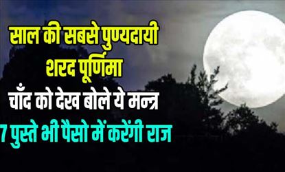 आपको बताते चलें की हमारे हिन्दू धर्म में शरद पूर्णमा काफी महत्वपूर्ण दिन माना जाता हैं, इस दिन से ही शरद ऋतु का आरंभ होता हैं। इतना ही नहीं यहीं वो दिन हैं जब चंद्रमा अपने सोलह कलाओं से युक्त होता हैं, ऐसी मान्यता हैं कि इस दिन चंद्रमा से अमृत की वर्षा होती हैं, यह धन, प्रेम और स्वास्थ्य संबंधी लाभ पहुंचाती हैं। शरद पुर्णिमा के दिन ही भगवान कृष्ण ने महारास रचाया था, आज के दिन ही भगवान कृष्ण सभी गोपियों के लिए कृष्ण बने थे, इसलिए इस महारास पुर्णिमा कहा जाता हैं। शरद पुर्णिमा के दिन व्रत रखने का विधान हैं, ऐसा माना जाता हैं कि इस दिन व्रत रखने से सभी मनोकामनाएँ पूर्ण होती हैं| व्रत रखने के साथ इस दिन पवित्र नदियों में स्नान करने का विधान हैं। इसके अलावा शरद पुर्णिमा के दिन कई तरह के उपाय किए जाते हैं क्योंकि ऐसा कहा जाता हैं कि इस दिन किया गया कोई भी उपाय बहुत जल्दी फलीभूत होता हैं। इस दिन जरूरतमंदों को दान करे, इससे लाभ होता हैं। शरद पुर्णिमा के दिन लहसुन, प्याज, मांस, मछली और नशीले पदार्थों का सेवन ना करे। शरद पुर्णिमा के दिन खीर बनाकर चंद्रमा की रोशनी में रखने की प्रथा हैं, ऐसा कहा जाता हैं कि इस दिन चंद्रमा की रोशनी से अमृत की बरसात होती हैं। यदि खीर को इस रोशनी में रखा जाए और उसका सेवन किया जाए तो सभी असाध्य रोग दूर हो जाते हैं। ऐसे में आज हम आपको एक मंत्र के बारे में बताने जा रहे हैं, जिसे आप चंद्रमा को देखकर बोल दे, ऐसा करने से आपको बहुत सारा धन लाभ मिलेगा।