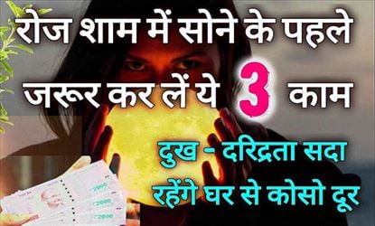 कड़ी मेहनत और लगन के बाद भी अगर आपको कामयाबी नहीं प्राप्त होती है तो यह बेहत दुखद बात है,लेकिन इस दुखद बात को सुखद बनाने के लिए आपको ऐसा कुछ करना होता है जो हम रोजना करते तो है लेकिन गलत ढ़ग से। इन्हीं के कारण आपकी सारी मेहनत रंग नहीं लाती और आपको हमेशा निराशा हाथ लगती है। कामयाबी प्राप्त करने और घर से दरिद्रता दूर करने के लिए आपको कुछ विशेष काम जरूर करने चाहिए जो आपको जीवन में एक नया सवेरा लाएंगे और आपकी किस्मत चमक जाएगी, शाम के समय और सुबह के समय क्या करना चाहिए और क्या नहीं हम आपको बताने जा रहे हैं।