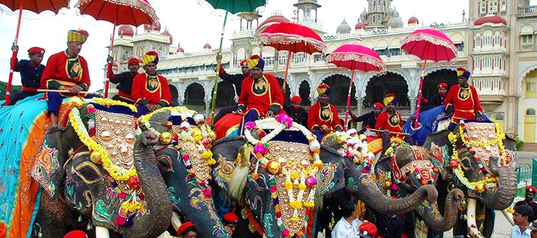 The city of Mysore has a long tradition of celebrating the dasara festival with utter grandeur and pomp to mark this day and the festivities there are an elaborate affair, attracting a large audience including foreigners. The dasara festival completed 400th anniversary in year 2010. The portrait of goddess Chamundeshwari was carried in a beautifully decorated wooden mantap mounted on the tusker. The Karadimajalu, Keelukunita, Dollukunita, Veeragase, Tattiraya troupes of folk artistes perform along the procession.