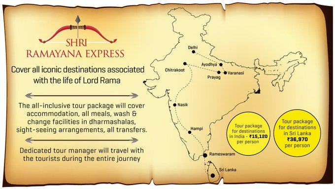 This train will reach Ayodhya, Pragyaraj, Nandigram, Janakpur, Chitrakoot, Sitamarhi, Nashik, hampi and Rameswaram.