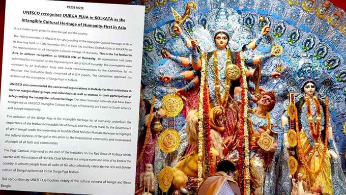 Kolkata Durgamata dussehra celebrations get special recognition. It is on the prestigious 'United Nations Educational, Scientific and Cultural Organization (UNESCO)' cultural list.
