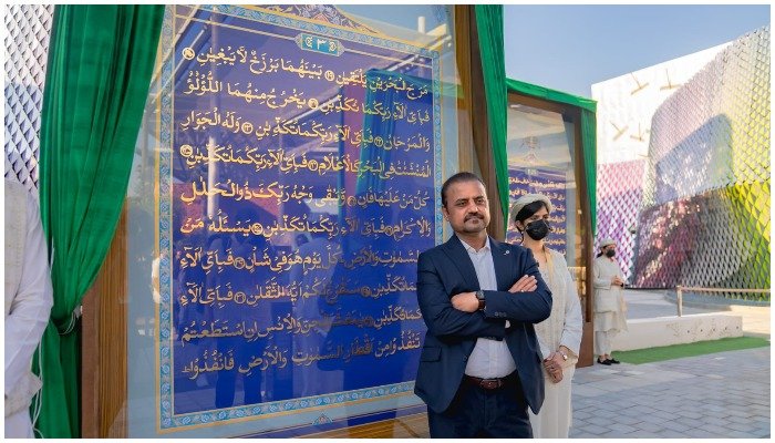 A portion of the world's largest Quran was unveiled at the dubai Expo 2020 of the United Arab Emirates (UAE). In this, there was a huge enthusiasm among the people to see the rare artifacts. Pakistan's Commerce minister Abdul Razzaq Dawood inaugurated the artwork along with senior expo officials and diplomats, including Pakistani Ambassador to the United Arab Emirates Afzal Mahmood. It is being prepared by Pakistani artist shahid Rasam.