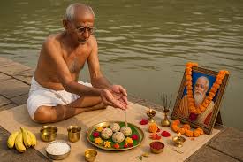 - Tarpan: Offering water and sesame seeds to ancestors while chanting mantras.