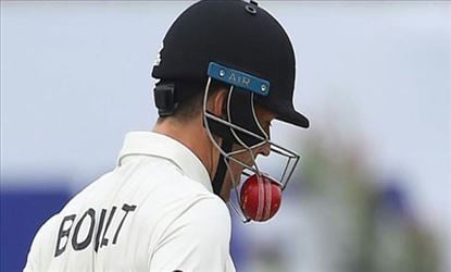 శ్రీలంక వర్సెస్ న్యూజిల్యాండ్ మధ్య జరిగిన టెస్ట్ మ్యాచ్ లో ఓ విచిత్ర సన్నివేశం జరిగింది. శ్రీలంక బౌలర్ లసిత్‌ ఎంబుల్‌డేనియా వేసిన బాల్ న్యూజిల్యాండ్ బ్యాట్స్ మెన్ ట్రెంట్ బౌల్ట్ స్వీప్ చేసే దిశలో బాల్ హెల్మెట్ గ్రిల్స్ లో చిక్కుకుంది. అయితే అదృష్టవశాత్తు ఈ సంఘటనలో బౌల్ట్ కు ఎలాంటి గాయం అవలేదు.