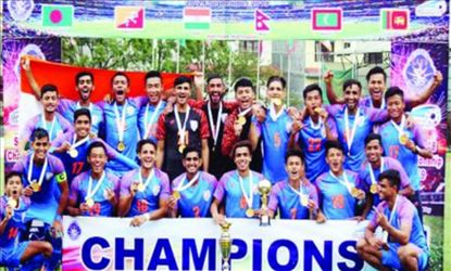 അണ്ടര്-18 സാഫ് കപ്പില് ഇന്ത്യയുടെ കന്നിക്കിരീടമാണിത്. കാഠ്മണ്ഡുവില് നടന്ന ഫൈനലില് രണ്ടാം മിനിറ്റില് ഇന്ത്യ മുന്നിലെത്തി. തൊയ്ബ സിങ്ങ് മറിച്ചു നല്കിയ പന്ത് ഗുര്കീരത് സിങ് വിക്രം പ്രതാപിനു നീട്ടി നല്കി. വലങ്കാലന് ഷോട്ടിലൂടെ വിക്രം വല ചലിപ്പിച്ചു. 22-ാം മിനിറ്റില് ഗ്രൗണ്ടില് കൈയാങ്കളി നടത്തിയ ഇന്ത്യയുടെ ഗുര്കീരതിനും ബംഗ്ലാദേശിന്റെ മുഹമ്മദ് ഫഹീമിനും ചുവപ്പ് കാര്ഡ് കിട്ടി. 38-ാം മിനിറ്റില് ബംഗ്ലാദേശ് സമനില പിടിച്ചു. കോര്ണര് കിക്കില്നിന്ന് യെസീനായിരുന്നു ലക്ഷ്യം കണ്ടത്.