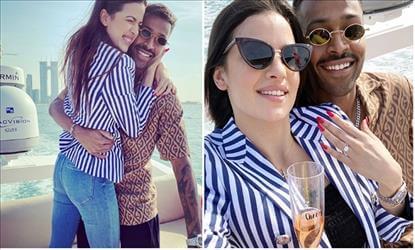 भारतीय क्रिकेट टीम के हरफनमाैला खिलाड़ी हार्दिक पांड्या ने बाॅलीवुड एक्ट्रेस नताशा स्टेनकोविच के साथ सगाई कर ली है। उन्होंने अपने फेसबुक अकाउंट पर कुछ तस्वीरें शेयर करते हुए इसकी जानकारी दी है। दोनों के चर्चे पिछले कई महिनों से चल रहे थे, लेकिन अब नए साल के माैके पर इस जोड़ी ने ऐलान कर दिया कि वो सदा के लिए एक-दूसरे के होने जा रहे हैं। दोनों जल्द ही शादी कर सकते हैं। क्रिकटरों का बाॅलीवुड एक्ट्रेस पर दिल हारना कोई नई बात नहीं। पांड्या से पहले मोहम्मद अजहरुद्दीन, हरभजन सिंह, युवराज सिंह विराट कोहली और मनीष पांडे बाॅलीवुड इंडस्ट्री में अपना दिल हार बैठे हैं।