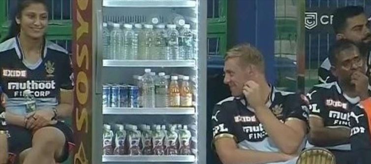 RCB bowler Kyle Jamieson was seen chuckling in the dugout during his side's batting innings, glancing at the team's massage therapist, Navnita Gautam. Although royal challengers Bangalore (RCB) succumbed against kolkata Knight Riders (KKR) by a comfortable margin, one of their players may have flown under the radar with one of the event's greatest bits. RCB were in trouble after losing four wickets before the midway point, with both virat kohli and ab de villiers returning to the pavilion.